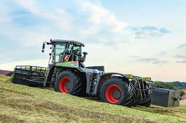 Mit unserem neuen Claas Xerion können wir auf höchstem Niveau euer Maissilo schieben und gleichzeitig verdichten.